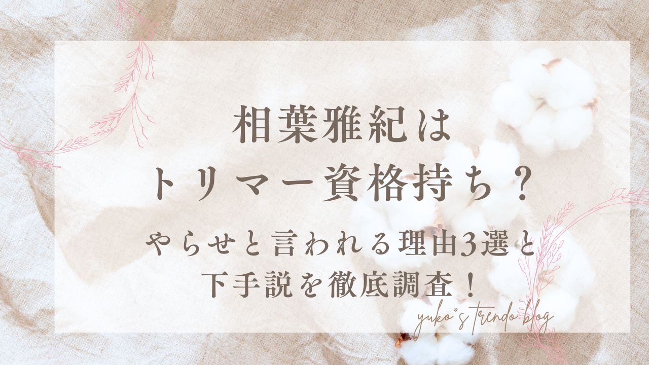 相葉雅紀さんが「正式なトリマー資格を所持している」という情報はありません。ただし、番組内でプロのトリマーから直接指導を受け、実際にトリミングを行っている姿が何度も見られています。
