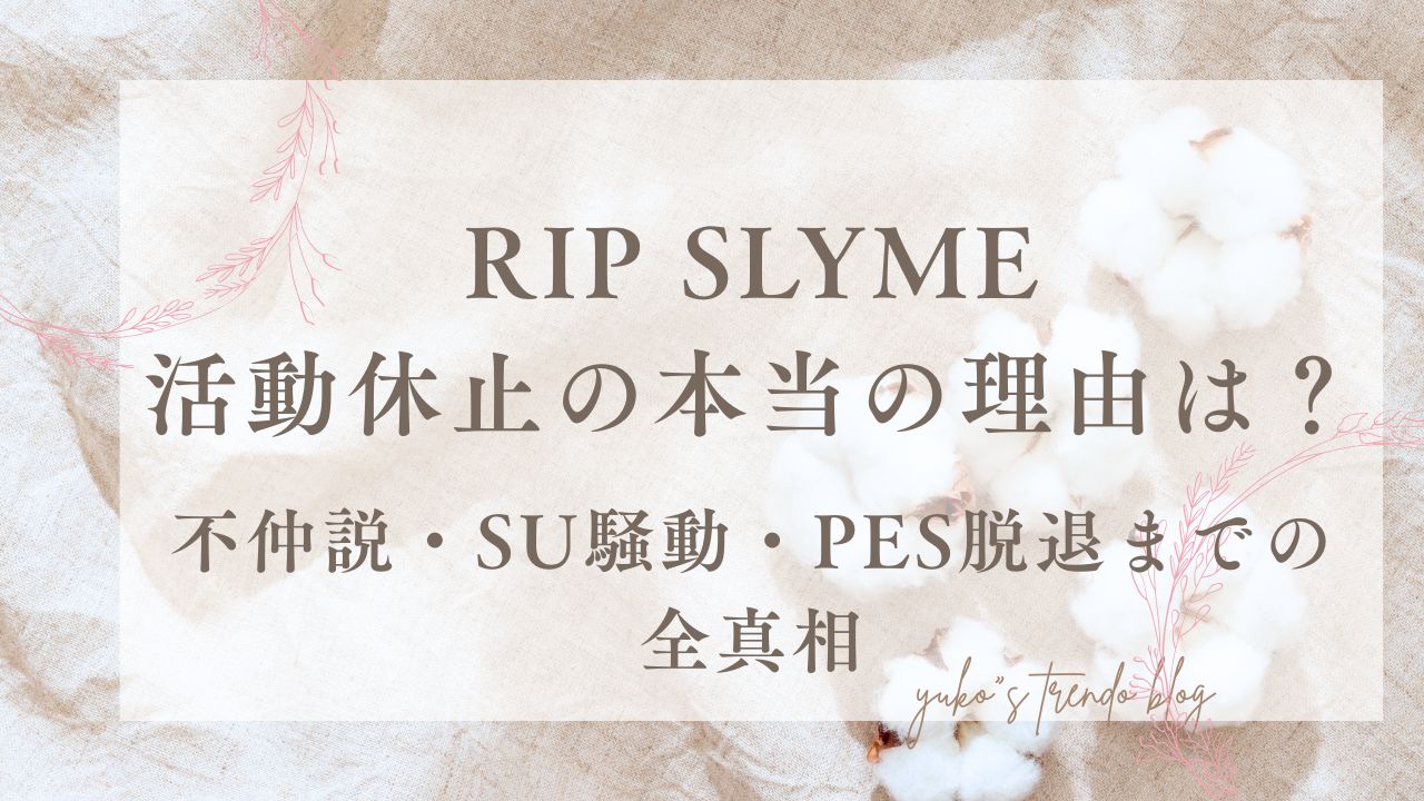 RIP SLYMEの活動休止理由は、単に不倫や不仲だけに断定するのではなく、実際にはSUさんの不倫騒動、PESさんの脱退、そしてメンバーそれぞれの方向性の違いが、同時期に重なったことで「5人体制の維持」が難しくなっていたと考えられます。