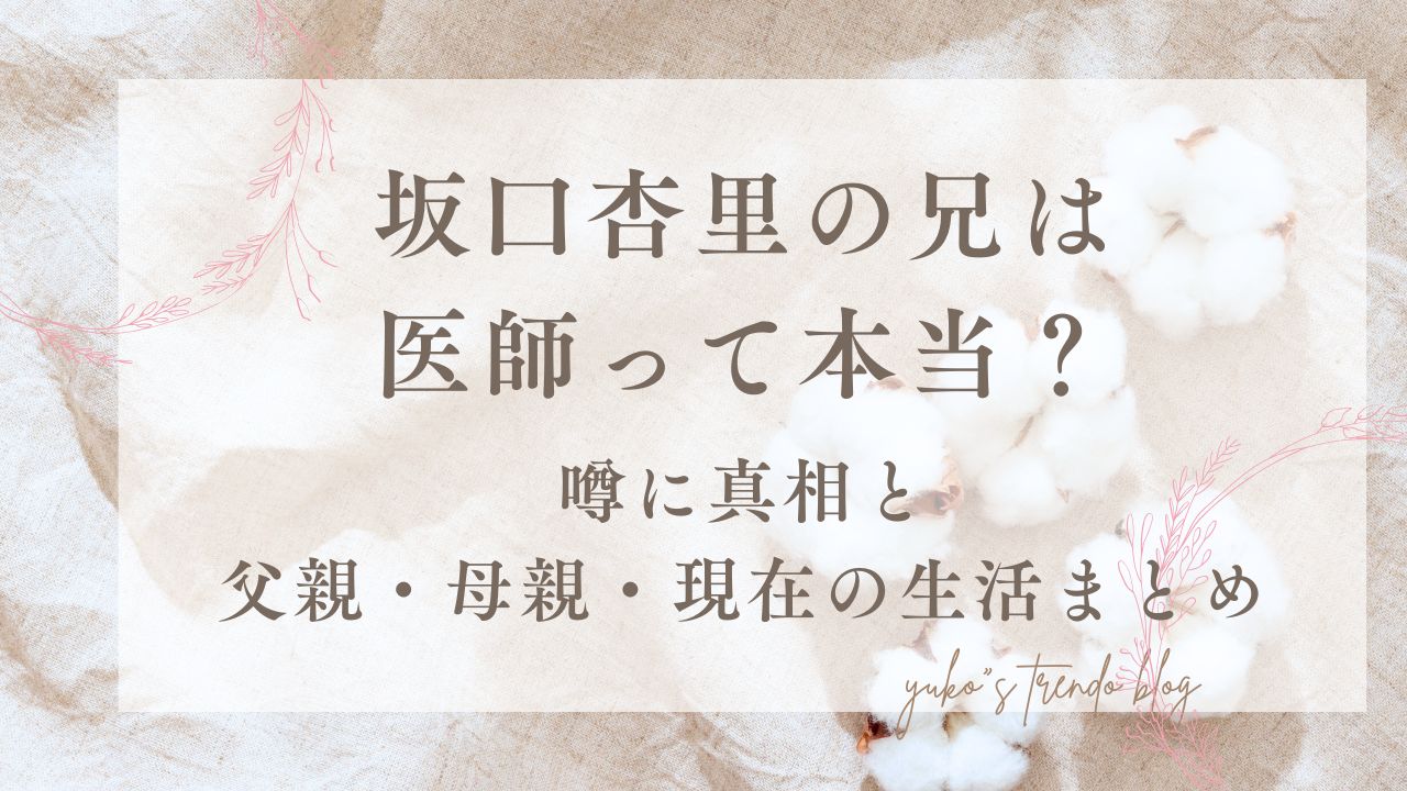 そのため、「坂口杏里さんの兄は医師」という情報はあくまで噂レベルにとどまっており、事実として断定することはできません。